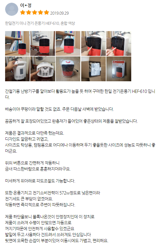한일 미니 전기 온풍기 HEF-610 - 상세스펙 및 구입